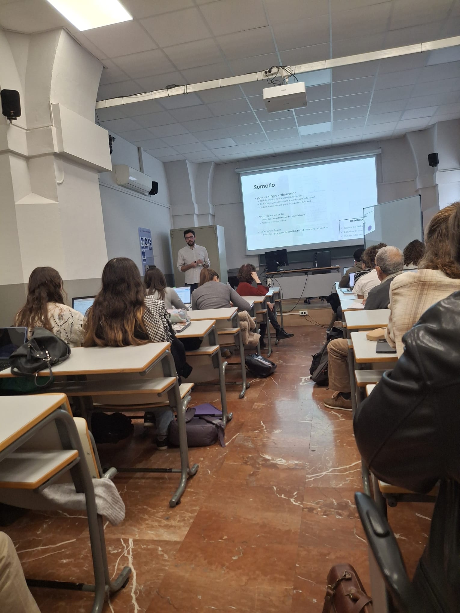 Nuestra IP 2, María Sierra, ha organizado esta conferencia, que lleva por título “Entre la realidad y el deseo. Decolonizando el poder del archivo”, en el Aula VIII de la Facultad de Geografía e Historia de la Universidad de Sevilla. Alejandro Pérez-Olivares, de la Universidad La Laguna, ha sido el ponente de esta conferencia. Sus líneas de investigación se centran en el estudio de la violencia política desde el prisma del control, en dos sentidos. Por un lado, y desde un enfoque sociocultural, a partir del análisis de la ocupación de ciudades durante la "guerra total” y la construcción de archivos político-sociales bajo las dictaduras del siglo XX. Por otro, y desde una perspectiva ambiental, a través del estudio de la gestión desigual de recursos en las ciudades (ecología política urbana) y la militarización de paisajes bajo la autarquía franquista. Forma parte de dos grupos de investigación: HC (Historia de la Ciudadanía) y CPSULL (Ciudad, Política y Sociedad).